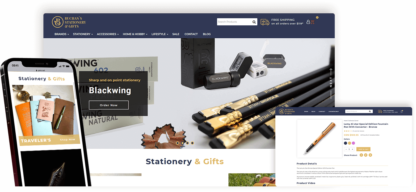 Vancouver based Buchan Stationery is one of the leading stores providing stationery items to its customers at competitive prices. However, an outdated website and poor online shopping experience have limited the revenue and growth of the company. Mediafy developed, integrated, and retooled a new online store, allowing Buchan Stationery to increase its online sales and revenue. Now the company is a successful online stationery store in Canada and ships product worldwide. Surprising special limited editions pens and gifts that sell for over $2,000 sell very often as collectors are looking everyday and find what they are looking for.