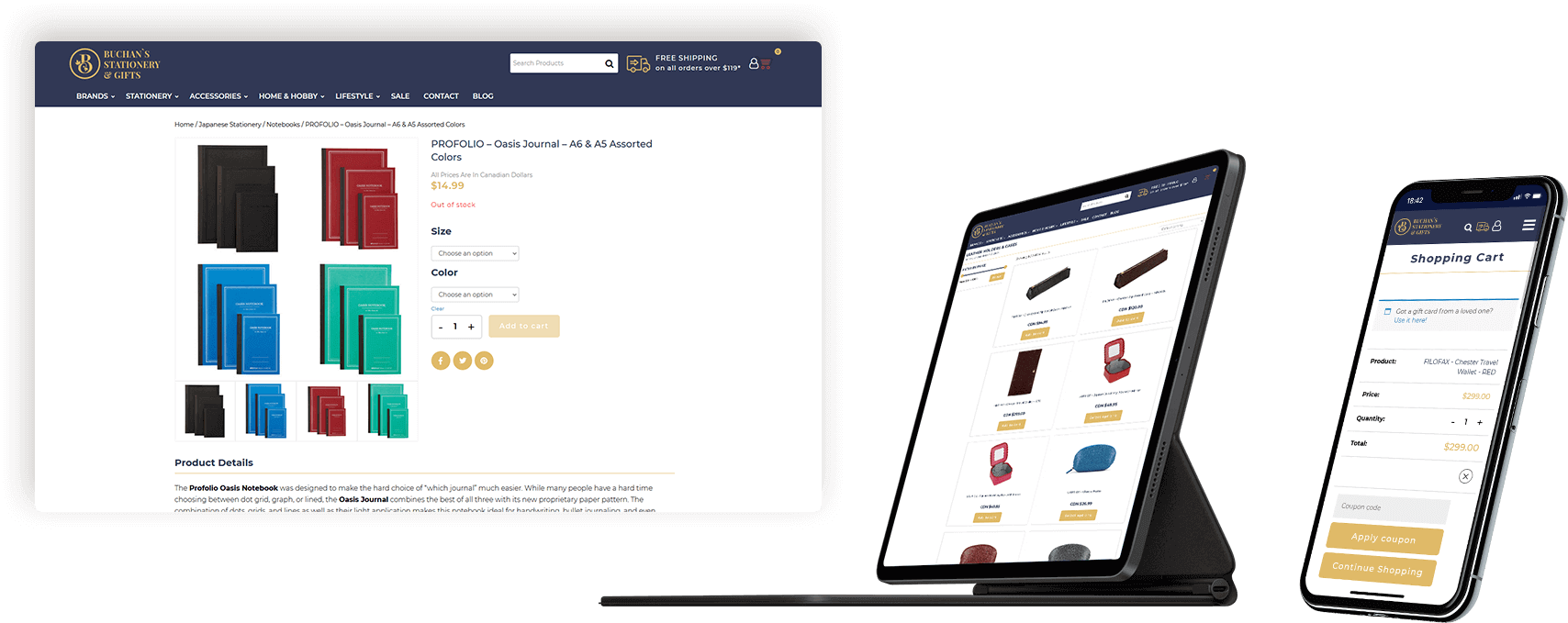 For over 60 years in Vancouver, Buchan Stationery decided to offer their products all over Canada through an online store but no one could find them and the old website only had paypal and difficult checkout process that caused the website not to function or generate much sales. To differentiate themselves from competitors, Buchan Stationery needed a digital online store that offers a memorable shopping experience for its customers with an easy to manage admin interface provided, to add new products to their online store and fast checkout on mobile. Social Media both on Facebook and Instagram suffered due to lack of relevant content that engaged users and integrated with the website and digital campaigns to reach our audience.
