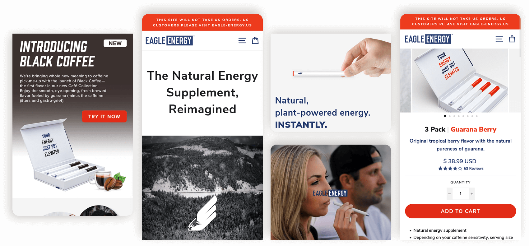 Developed as a healthy caffeine alternative, Eagle Energy is the first and only inhalable energy supplement to boost energy with natural, plant-based ingredients, including guarana, ginseng, and vitamin B12. Safe, effective, and easy to use—welcome to the future of caffeine.